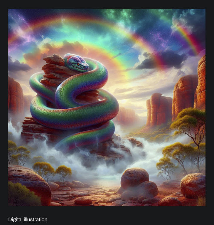 Digital Illustration on right: from ‘The Rainbow Serpent’ Feature Story